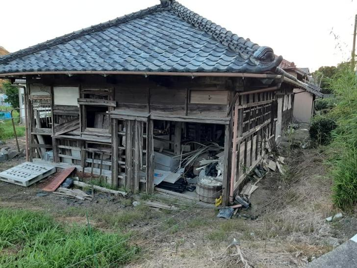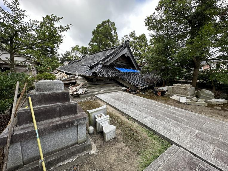 Mr. O introduced me to Haguro Shrine in Shoincho, Suzu City, so I visited. The Noto earthquake caused various damages, including tsunamis, uplifts, and fires, but it is said that Shoincho, Suzu City, suffered the most damage from the earthquake alone. As you can see in the photo, the main hall has collapsed. Similarly, the surrounding houses have also been almost completely destroyed.