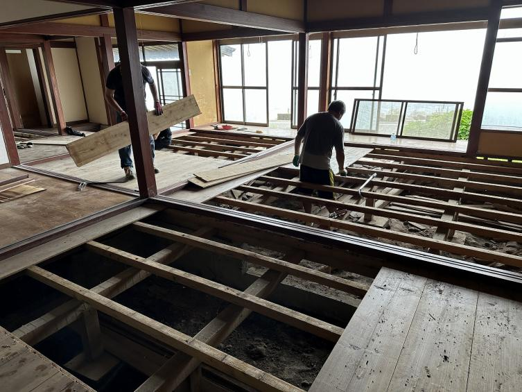 ぼくたちGRIDFRAMEは、その壊れた建物が解体されて「奥能登の時間を記憶したモノ」が失われてしまう前に、一つ一つのモノに向き合い、SOTOCHIKU素材として採取し、新しい空間づくりの素材として、引き継いでいきます。