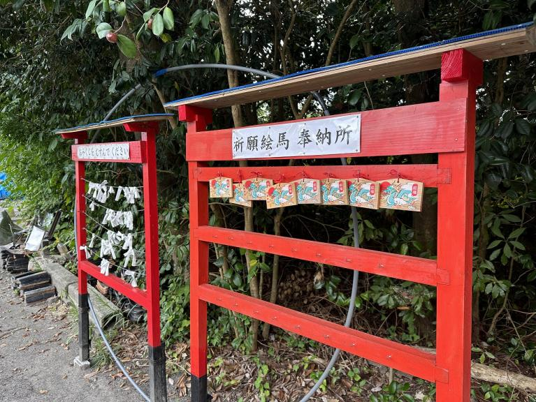 上の右の写真には、救出された絵馬とおみくじが大切に掛けられています。本震が到達した元旦16時10分までに祈願されたものですね・・・。