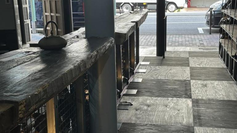 この瓦は、カウンターの正面や南部鉄器の棚の下部に使わせていただきました。