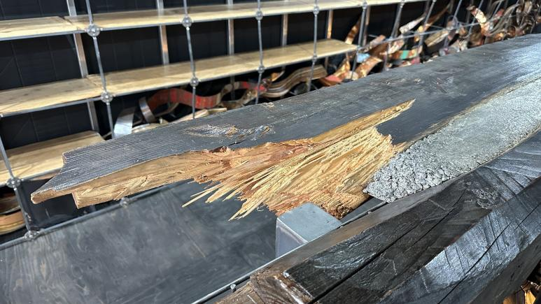So, three years have passed since I first encountered it in the photo, and I am very happy that I have been able to use it in part, just as I had suggested. The beam in the photo above is the material I harvested this time.